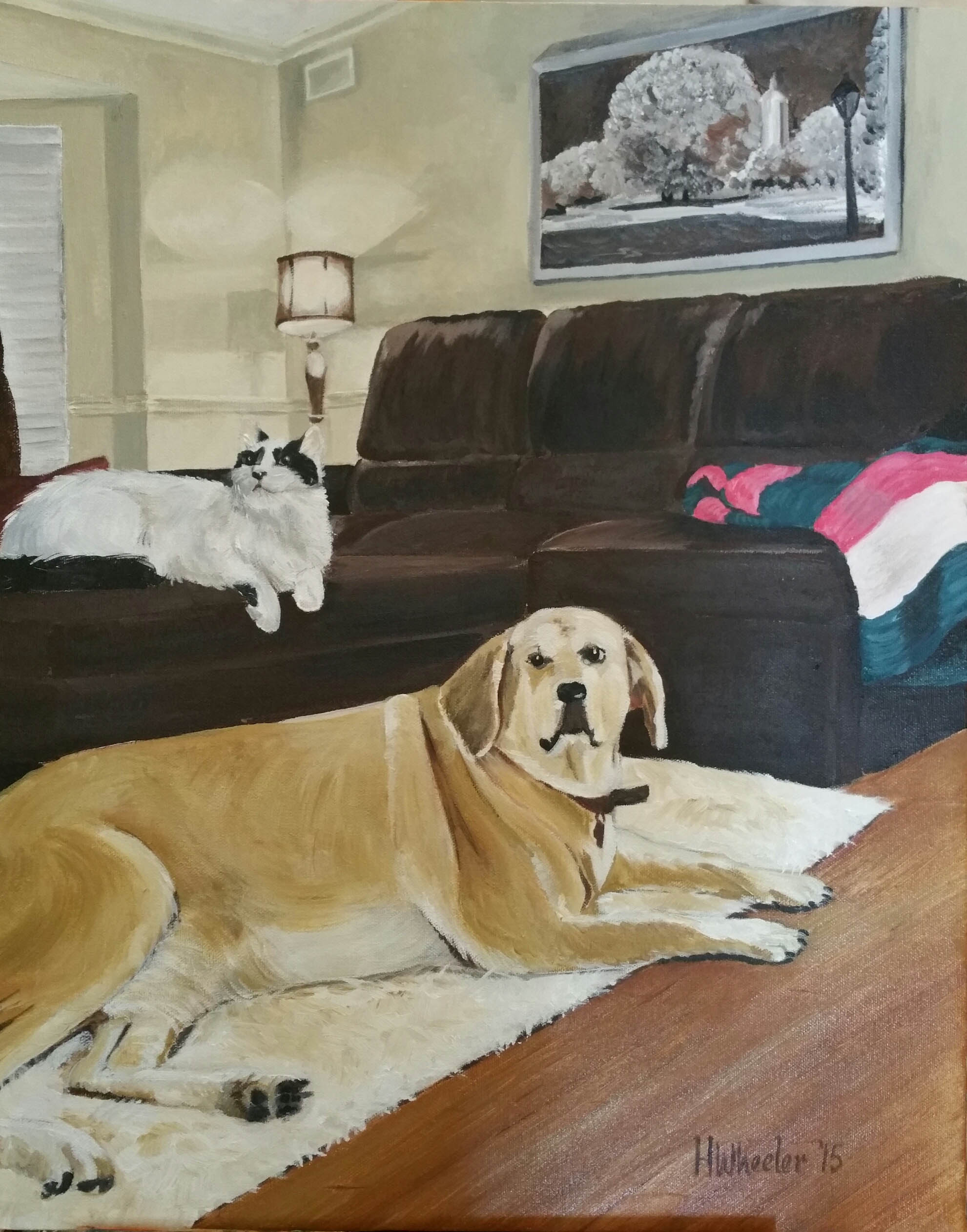 This is my final painting for my art class. This is my dog, Claire, and my cat, Fluffy. I painted this with acrylics. My daughter was getting their attention while I snapped the picture. Enjoy!