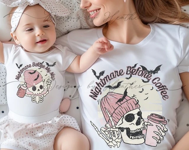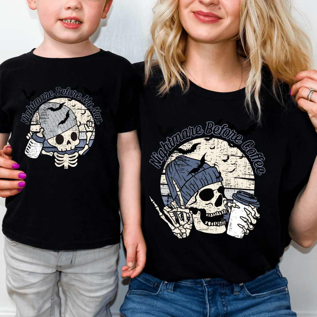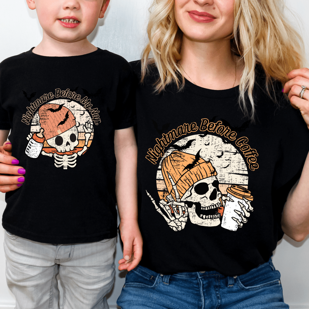 Celebrate the joys and challenges of motherhood with our “Nightmare Before Coffee” and “Nightmare Before My Nap” matching shirt set. Because sometimes, all you need is a little humor (and a lot of coffee) to get through the day.